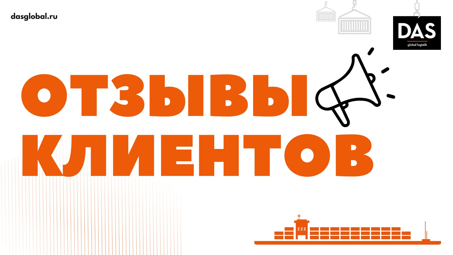 «…выражаем благодарность компании ООО ДАС ГЛОБАЛ ЛОДЖИСТИК за помощь в оказании транспортно-экспедиционных услуг. За время совместной деятельности компания показала себя надежным деловым партнером. Сотрудники компании показали высокий уровень профессионализма в выполнении своей работы, а также оказывали нам активную и результативную помощь в решении текущих и, иногда, довольно нестандартных вопросов с соблюдением профессиональной этики на достойном уровне. Особенно следует отметить профессионализм и чувство ответственности персонала склада. Благодарим за отзывчивость на наши просьбы и оперативное решение задач любой сложности...»